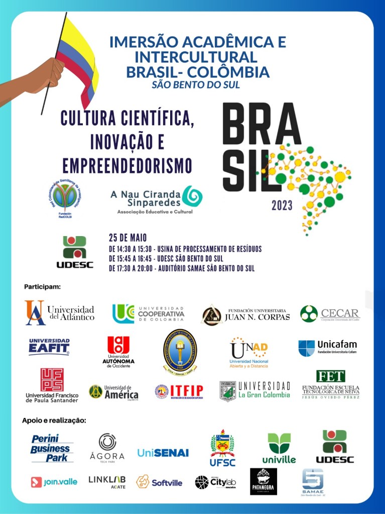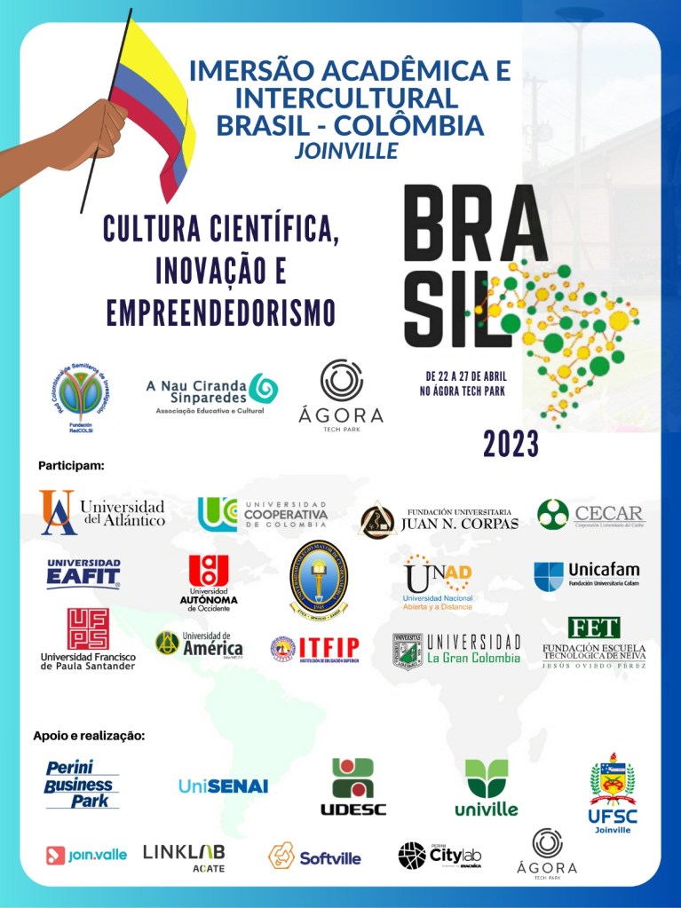 Após três anos de congelada a mobilidade acadêmica internacional por causa do COVID-19 A Nau Ciranda Sinparedes reinicia suas atividades de intercâmbio Brasil – Colômbia tendo como cenário protagônico inicial o estado de Santa Catarina, ao sul do país, tendo como foco de aprendizado o reconhecido e pujante Ecossistema de Inovação do estado.