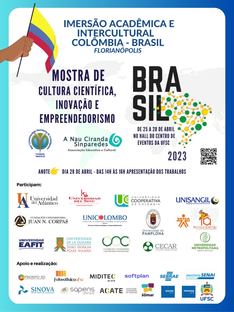 Um grupo de estudantes pertencentes a grupos de iniciação científica de diferentes universidades de Colombia visitaram o Brasil entre o 23 e 28 de abril de 2023 para conhecer o ecossistema de inovação de Florianópolis, SC, e compartilhar seus trabalhos de pesquisa com a comunidade educativa da UFSC (Universidade Federal de Santa Catarina).